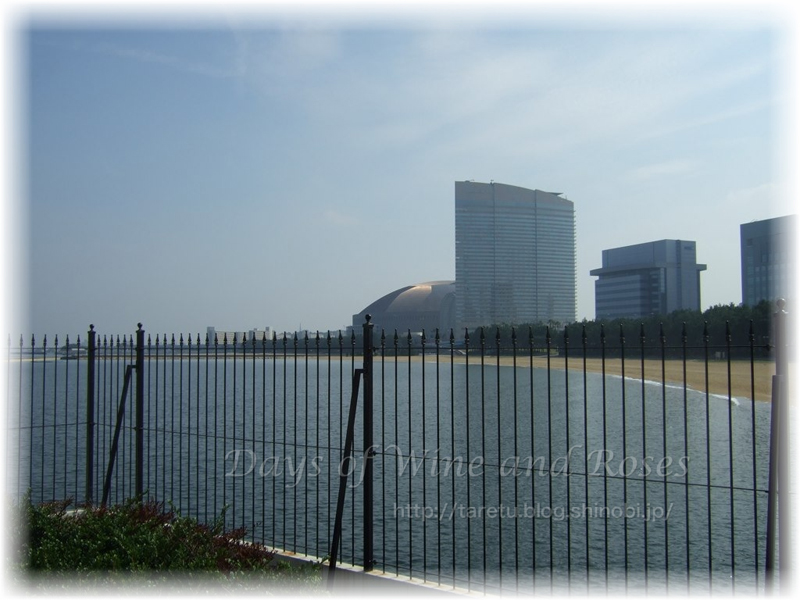百道の浜が目の前に。向こうにソフトバンクホークスのホームグラウンドの福岡ドームが見えます。ヒルトンシーホークも。