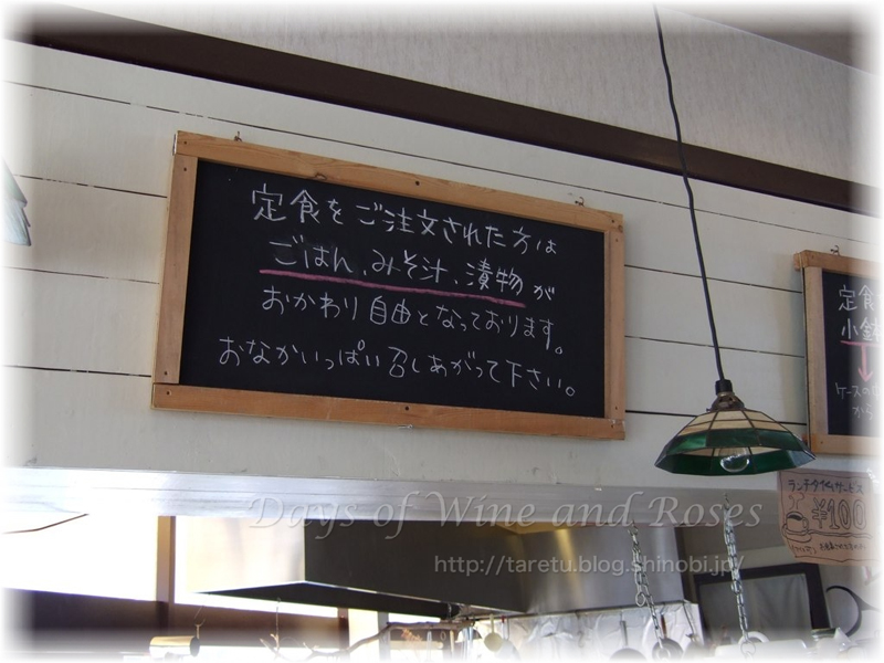 この看板どおり、お味噌汁もセルフサービス、おかわりが可能ということですね。漬物も食べ放題。かまどご飯はお代わりをお願いすることができます。