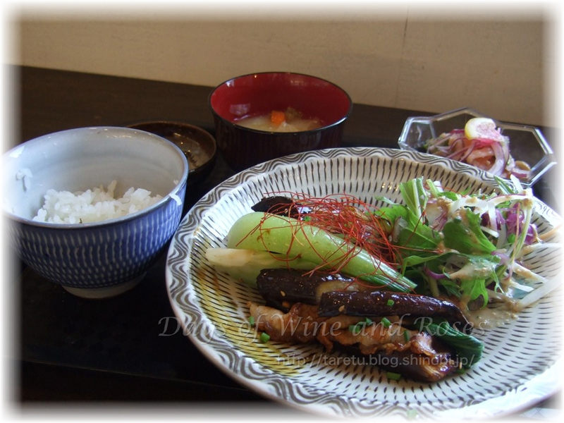 初めてなので、定番とも言える日替わり定食お願いしました。本日のメインはなすの肉詰め。