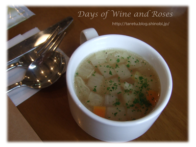 セットについていたスープにも早速いきさん豚のベーコンが入っていて、いいお出汁がでています。うまうま。