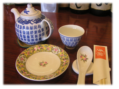 さて、そのランチをお願いすると、ポットサービスのお茶を選びます。ウーロン茶とジャスミン茶とを選べるみたい。この日は、ジャスミン茶にしてみました。