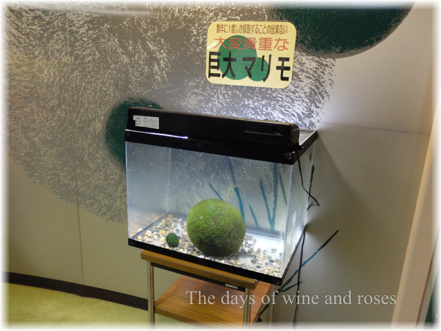 天然まりもです。観光用のおみやげに売っているのは人口品もしくは海外産だそうで、天然が見られるのはここだけ、とのこと。(まあ、見た目、その差は素人にはよくわかりませんが)