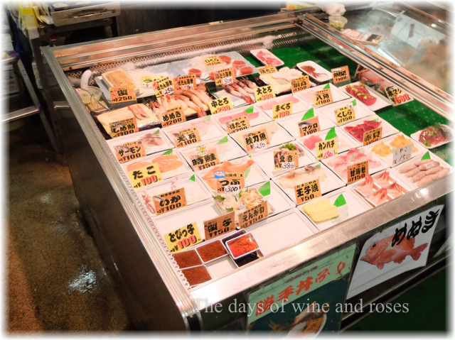 勝手丼用のお刺身です。好きなものを選んでお店の人に盛ってもらいます。