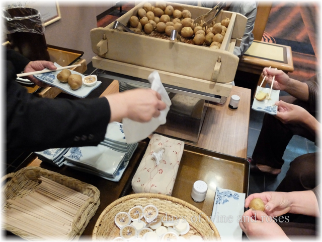 もう一つの目玉がふかしジャガイモ食べ放題。ここの食事はビュッフェスタイルなので、まあ、先にジャガイモでお腹いっぱいになると困るわけなのですが。