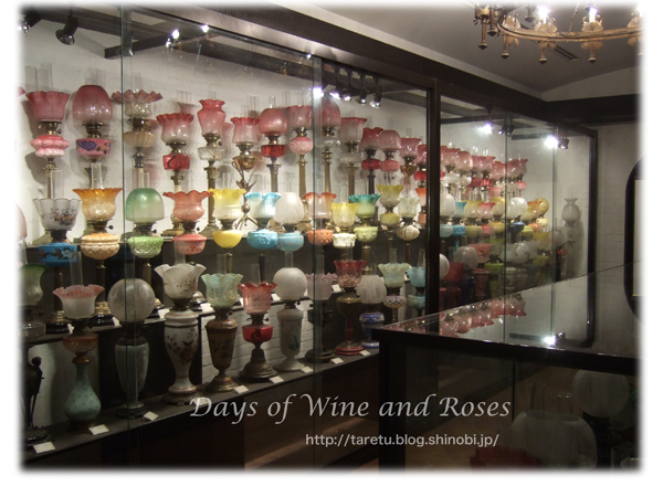 ガラスと鉄と陶器と、クラシックに数々の意匠を凝らしたランプたち。それにしても、よくぞ集めたりのこの数です。