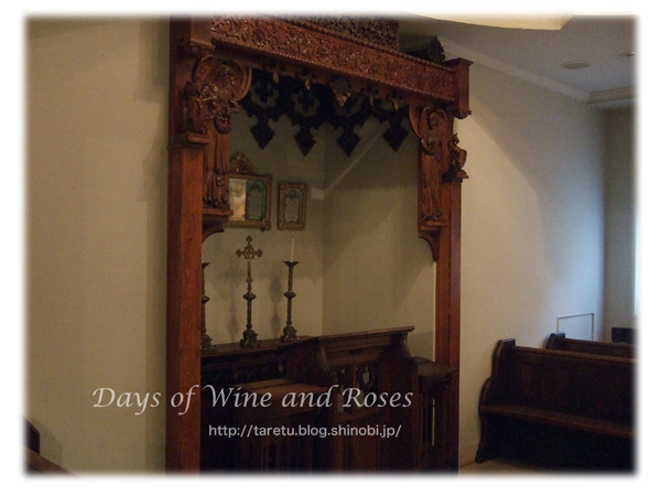 彫刻に飾られたアンティークな祭壇が素朴な感じで、日本の各地にある華美ではない教会のようです。