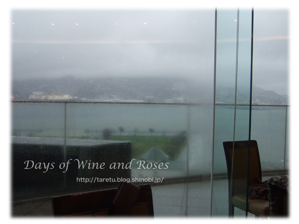 雨と霧とでな〜んにも見えない。せっかくの窓際の席なのに〜。