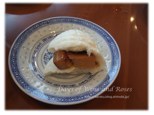 中華パンにつつんでいただきま〜す。じんわりと脂の旨味が口の中にひろがり。もちもちの中華パンがそれをしっかりと包んでくれます。旨。