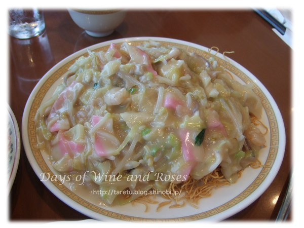こちらは皿うどん。細麺です。こちらも美味しそう。スープはチャンポンのものと同じとのことですから、皿うどんにしておけばよかったなぁ。