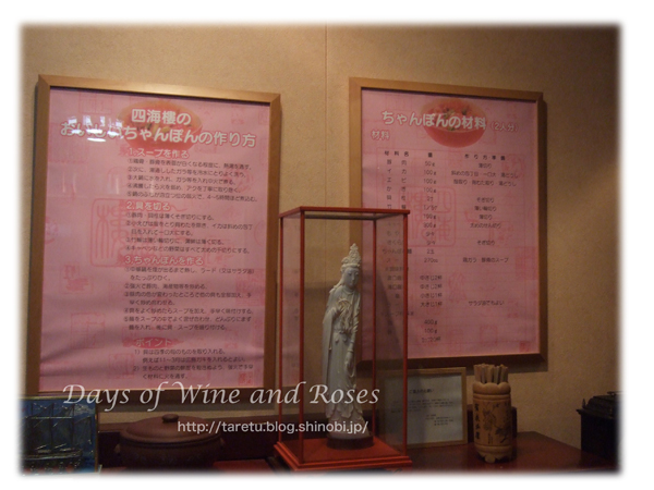 チャンポンの成り立ちその他の説明とともに、四海楼がこれまで集めてきた美術品などが置いてあります。
