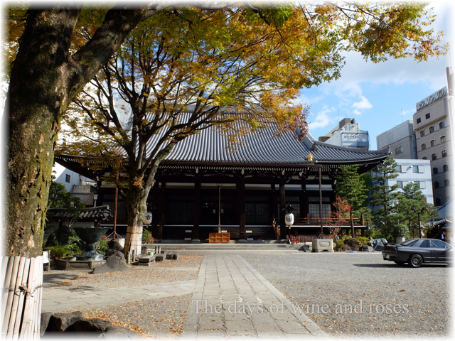 ほどよく色づいた葉が飾る大きな境内です。本堂は整然と美しく、結構新しそう。