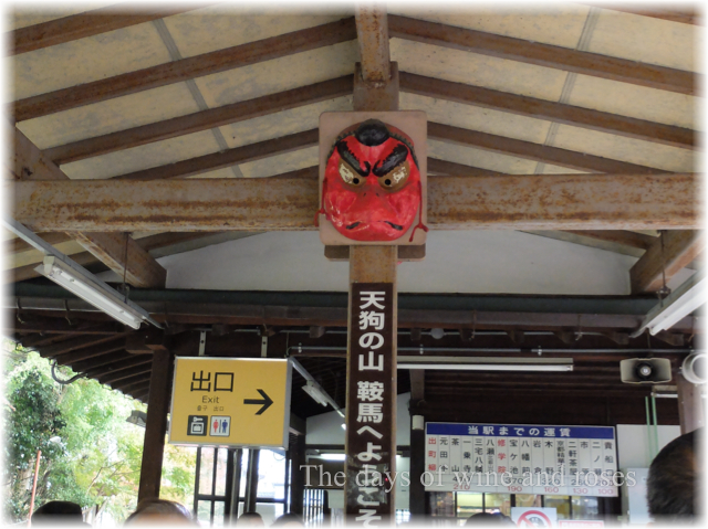 叡山電車の終点、鞍馬の駅。天狗面が出迎えてくれます。