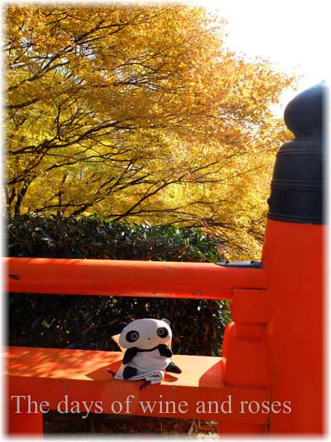ここで金色のもみじの前で、おおたれくんの記念撮影でし。