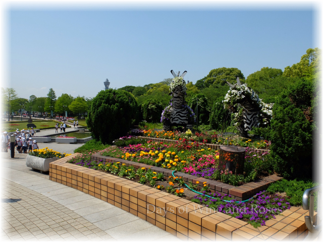 園内には動物園もあるので、花でかたどられた動物像がおいてあります。これはシマウマかな。