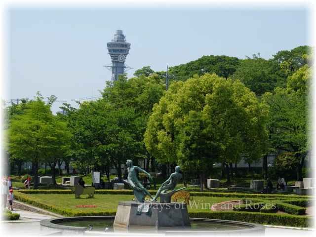 園内から通天閣が見えるのが、大阪らしい。シンボルだものね。
