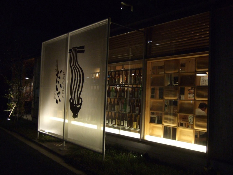 新しいお店のようで、結構暗い高知駅北口のまわりを明るく照らしています。「土佐うどんのだいせい」というお店です。