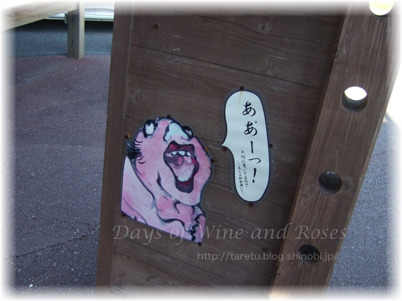 駅を降りると迎えてくれるのは、この絵金の絵。すっごい謎です。多分、絵金の絵の一部なんだろうけど。(後で図録を確認すると大鷲を見て驚いている人の顔でした。)