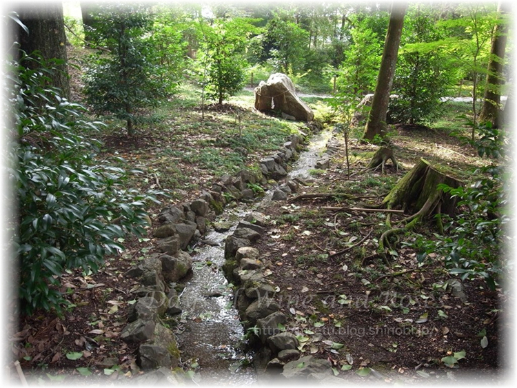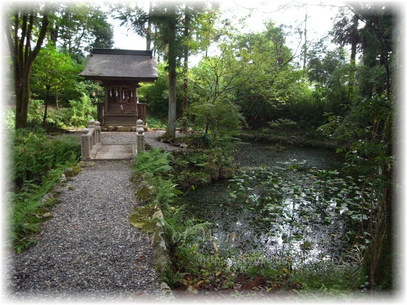 水音に誘われて歩を進めると、池に囲まれたお社が。