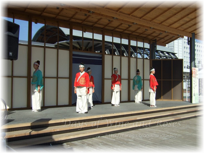広場ではちょうどイベントがあってました。よさこい祭を盛り上げる女性チームの演舞です。