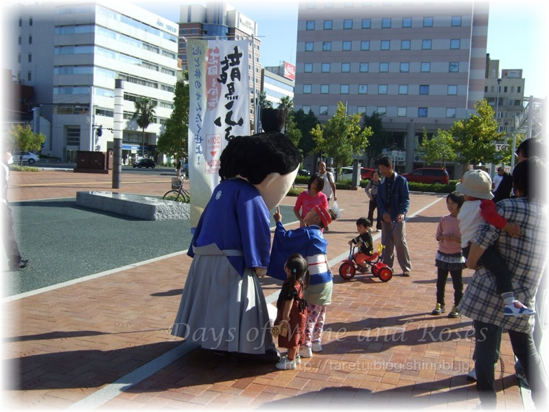 そして駅の前の広場では龍馬のゆるキャラが愛想をふりまいています。子ども連れじゃないので、ちょっと写真撮りにくいw