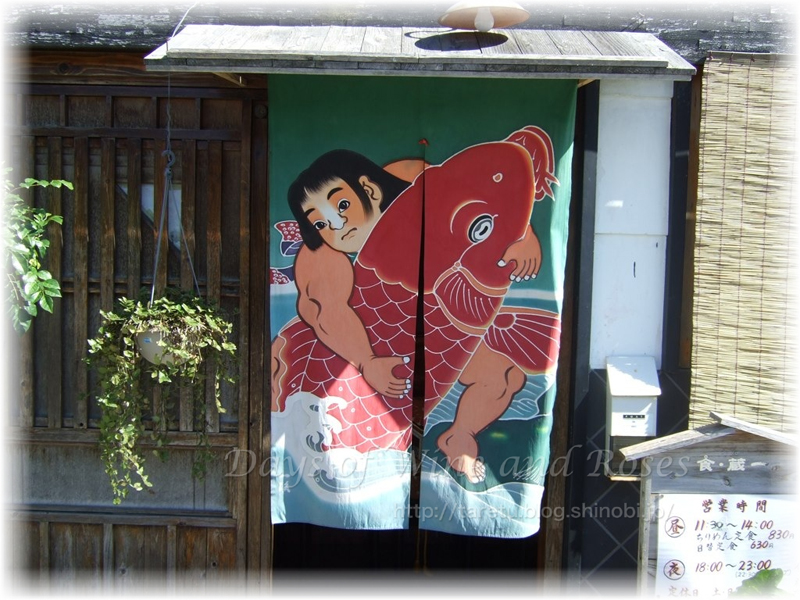 表にかかっているのれんは、土佐凧の意匠。金太郎と鯉。おそらく絵金のものなのでしょう。