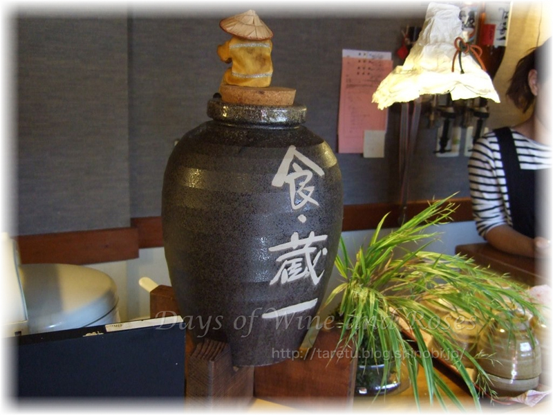 カウンター席の前には食蔵一の名前がついた大きな徳利が置いてあります。