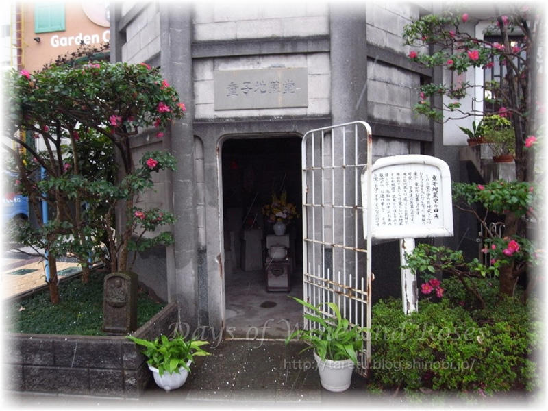 入口の横には童子地蔵堂があります。おまつりをする人のなくなった無縁の童子、童女のお墓だそうです。葬った人たちの悲しい心をあらわすような、可愛らしいお地蔵さんがたくさん祀ってありました。鳥取中のお寺で放棄されていたお墓をこの場所に移したものだそうです。