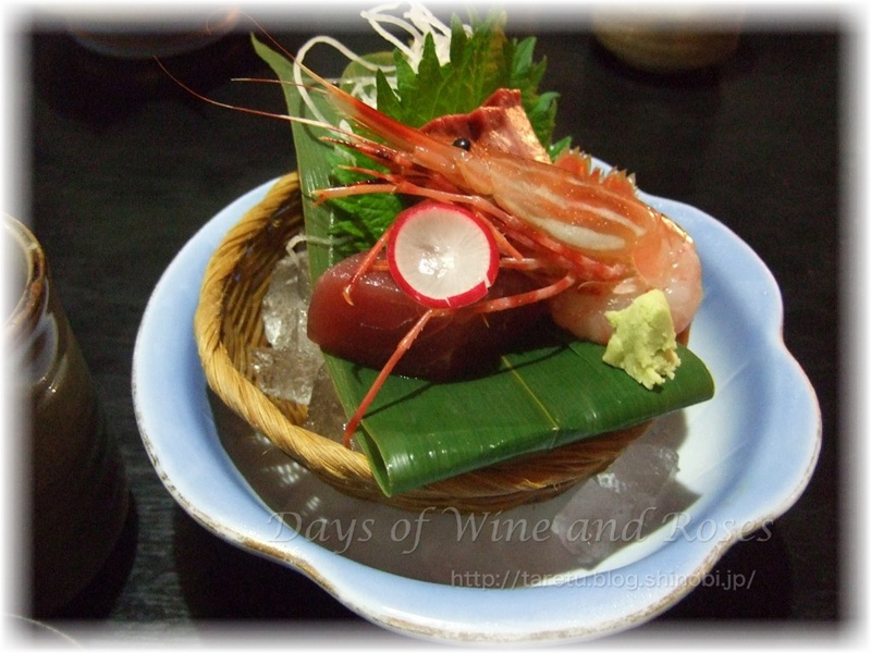 まずはお刺身。鳥取名物のもさ海老は欠かせません。氷りでほどよく冷えてとろけるよう。