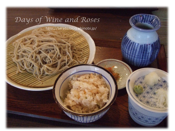 私は丸抜きの白い蕎麦をいただきました。ついでに前回食べ損ねた変わりご飯もいっしょに。本日の変わりご飯はうどと帆立ご飯。蕎麦はもちろんのこと、こちらも美味しいですね。