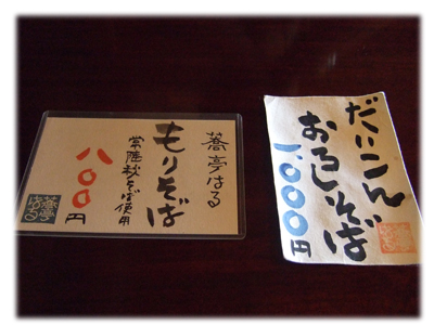 温かい蕎麦かもりそば。だいこんおろしそば。それだけです。