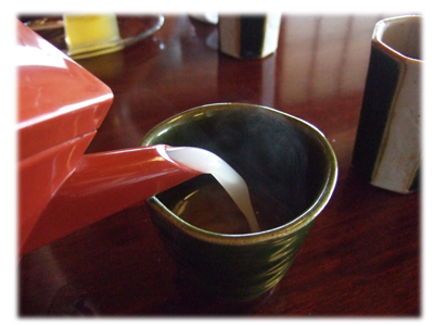 大抵、このそば湯をいただくと、胃の中でふくれてきて満腹します。
