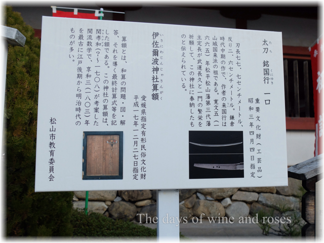 江戸時代の和算の発展で、庶民に算学ブームがおきたらしく、全国の神社にこういった算額が奉納されているのだそうです。ここ伊佐爾波神社は関孝和が考案した関流数学で、江戸後期から明治時代の算額が見られるとか。(ただし、展示は写真のみで、本物は残念ながら見ることができませんでした。博物館に保管しているんだろうか。)