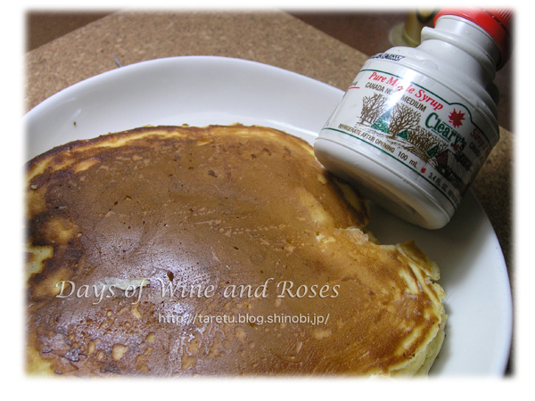 早速、ホットケーキを焼いて、たっぷりのメープルで食べてみました。シロップが100%メープルかどうかで、ホットケーキの味は随分変わります。