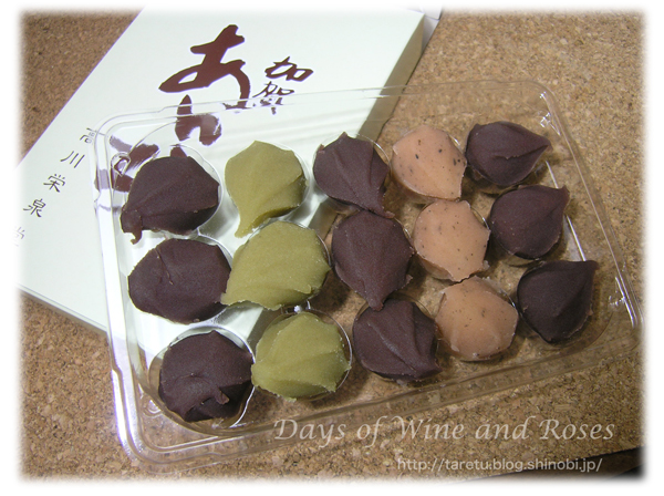 加賀あんころは、かなり伝統のある御菓子のよう。お餅を上質の餡でくるんであります。赤福餅とか、そういった系統ですが、赤福と比較すると餡がかためでしっかりとしています。