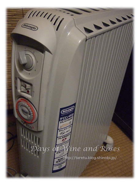 デロンギヒーターを購入しました。オイルヒーター、すなわち、循環するオイルを電気で温め、その輻射熱を利用して部屋を暖めるというものです。