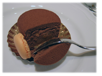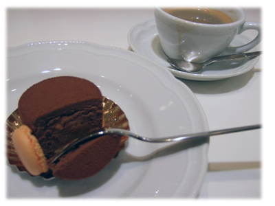 見た目よりは、かなり軽い印象で、甘さもフランス菓子にしてはかなり抑えめに。でも、チョコレートの風味は濃厚に、といった感じ。