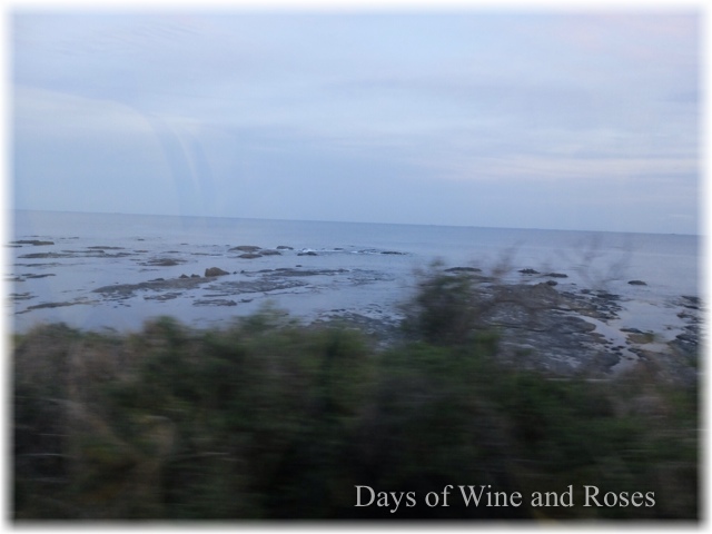 車窓は熊野灘。補陀洛渡海の海です。あらためて、遮ることのない太平洋だな、と。