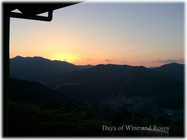 山の端に陽が沈み、空が淡い朱に染まります。