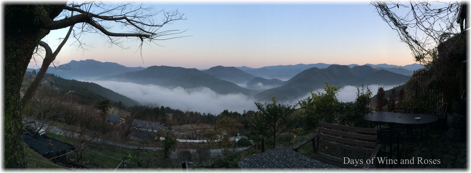 見渡す限りの山霧。必死でシャッターを押していたら宿の方がコーヒーを淹れてくださいました。