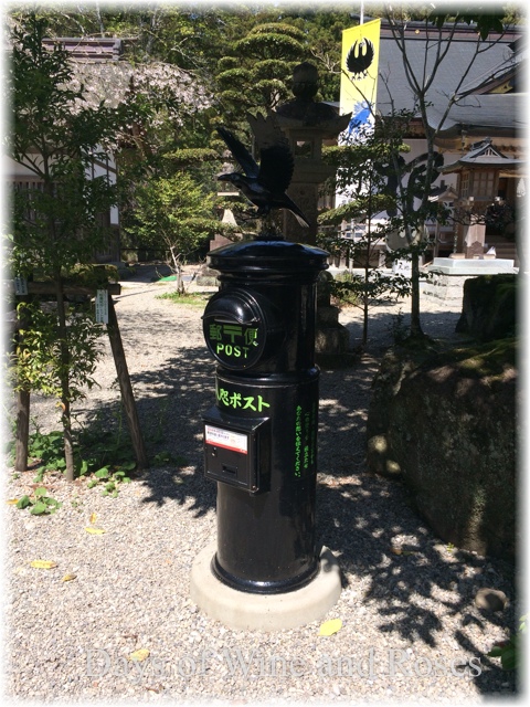 境内には八咫烏ポストがあって、八咫烏の葉書を運んでくれるそうです。