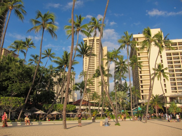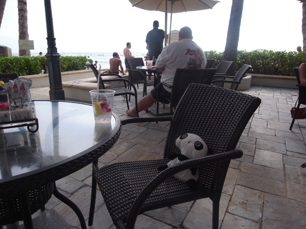 写真は、コロニアルスタイルの代表的なホテル、モアナサーフライダーのビーチカフェです。散歩に行ってソフトドリンク一杯飲んで、写真だけとってきました。