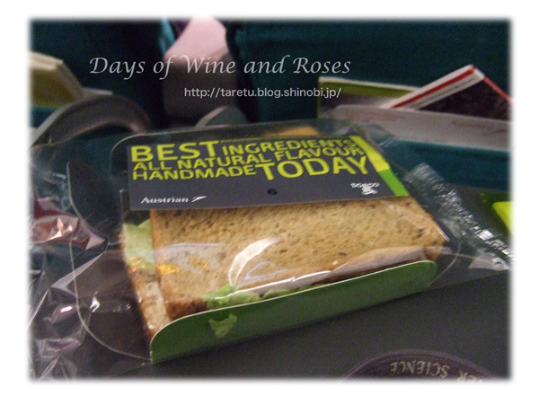 一応の国際線ですが、ユーロ圏内なので簡単な機内食。サンドイッチです。