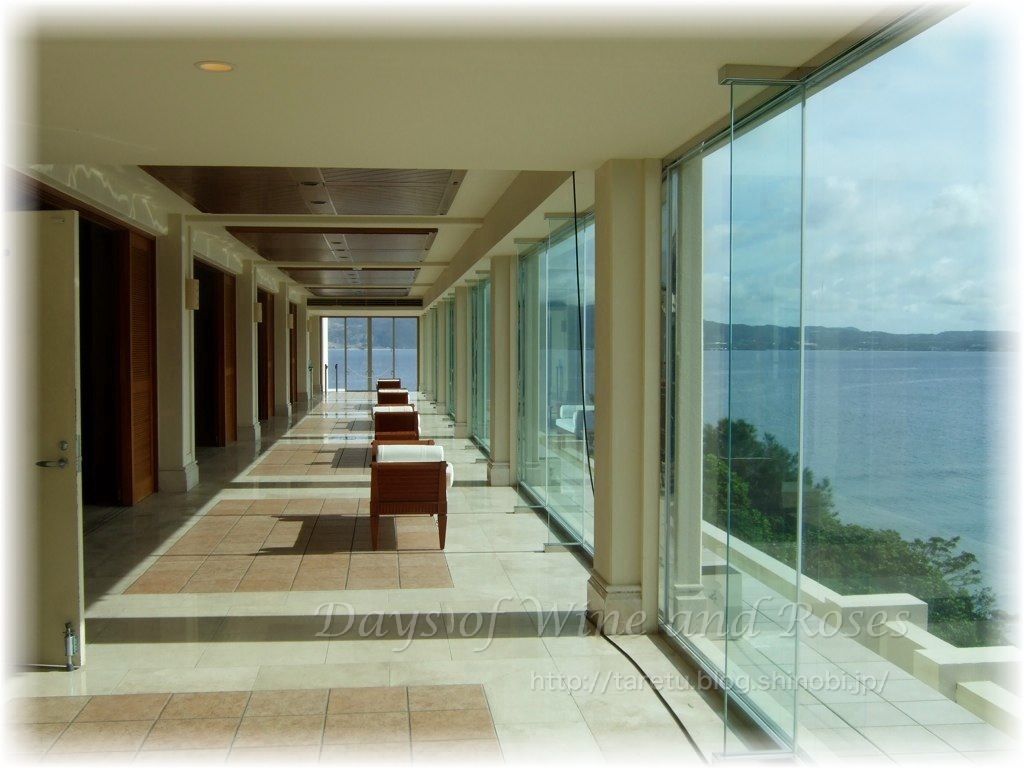 会議室の横にある廊下は全面ガラス、目の前の海がよく見えます。見た目はもちろん素敵だけど、ここは冷房が効かないので、ものすごく暑い。