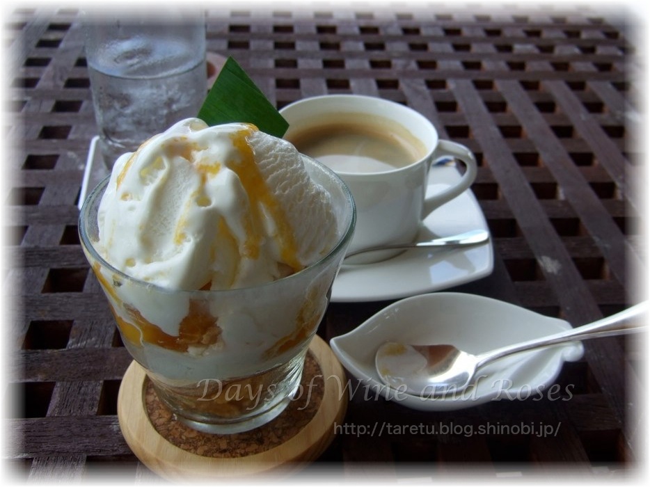 まずは目についたマンゴーパフェを食べてみました。コーヒーといっしょに。