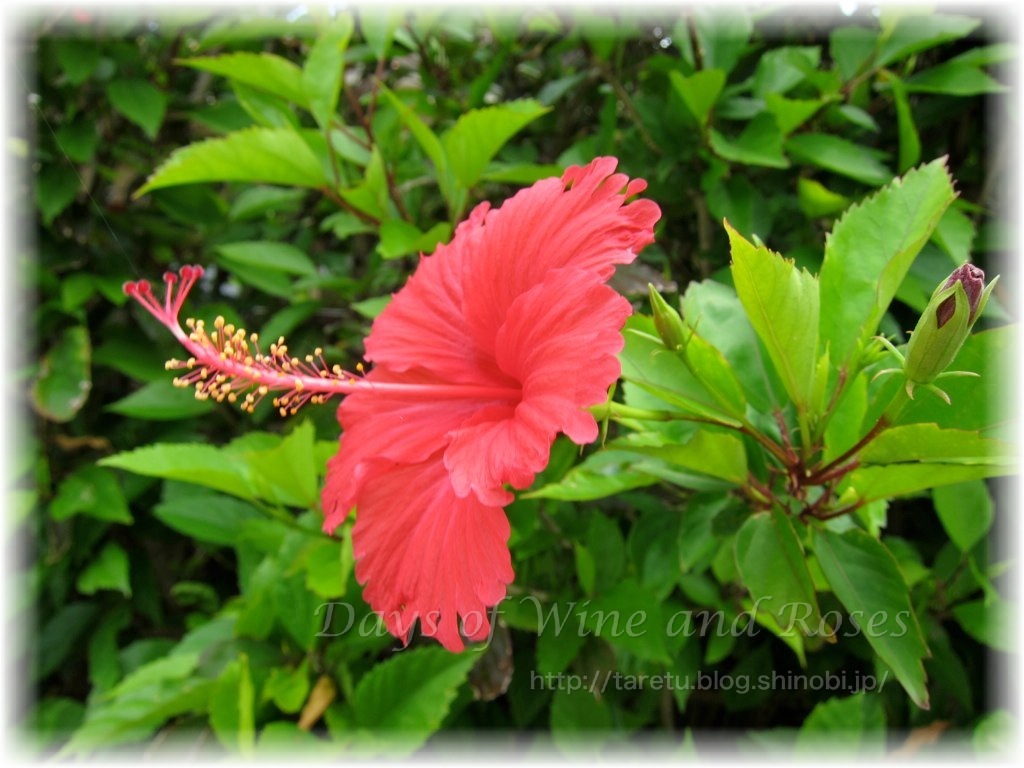 散歩の途中でみかけた大きなハイビスカス。これを見るとやはり「沖縄!」って感じがしますね。