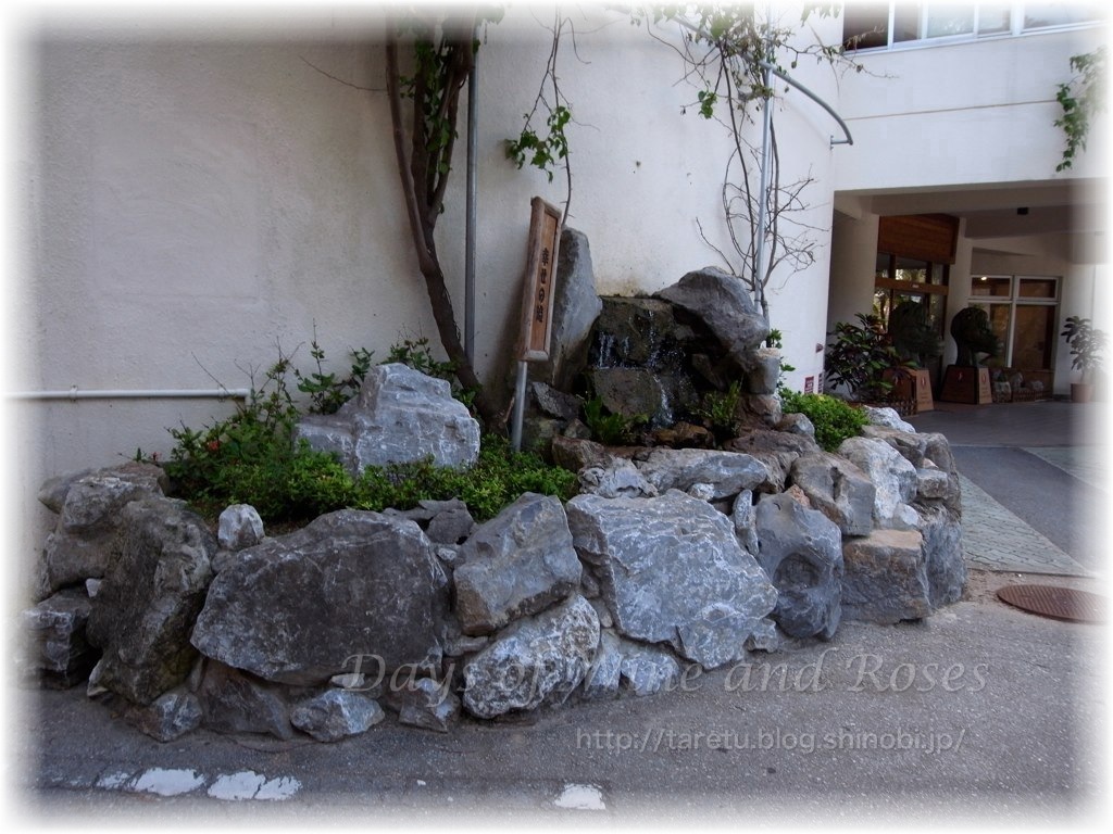 白い洋風のリゾートホテルですが、入り口には幸せの滝。幸喜の地名に因んだのかな。