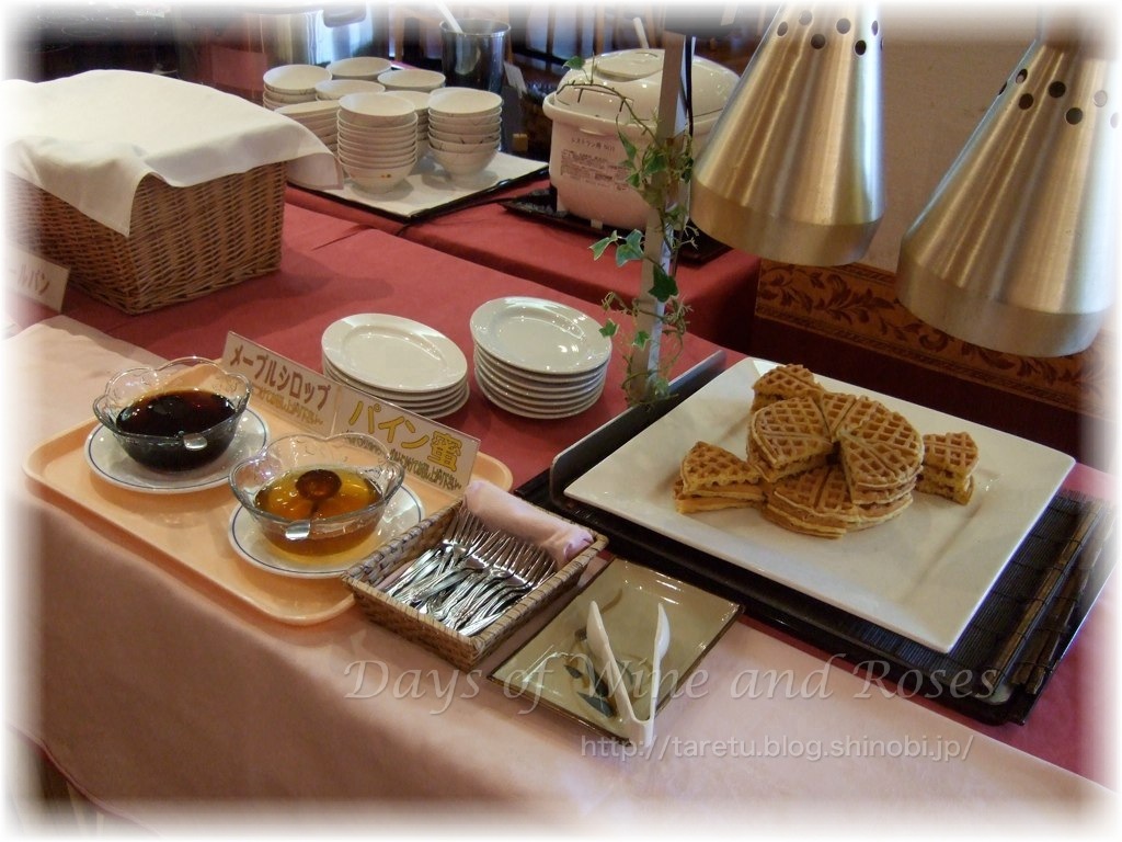ビュッフェは和食だけではありません。焼きたてのワッフルなんぞも。朝から甘いものは、ちょっと苦手なので、手を出しませんでしたが、パイン蜜ってのがさすが沖縄。