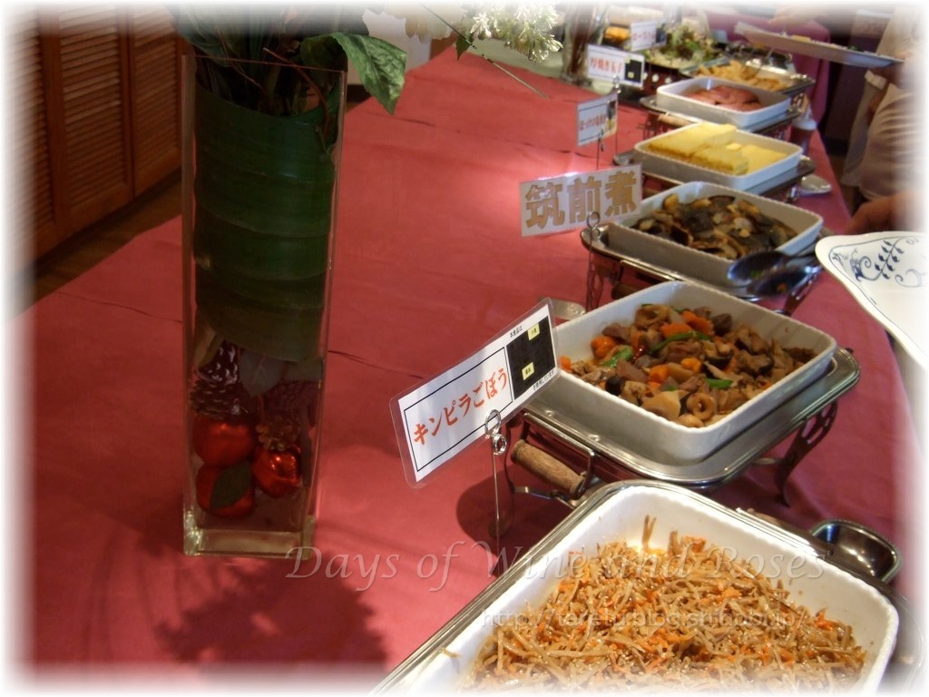 ずらりと並んでいるのは、和食のおかず。家庭料理っぽさが素敵です。もちろん、豚肉や、ゴーヤ、昆布といった沖縄料理の食材を使った料理も並んでます。