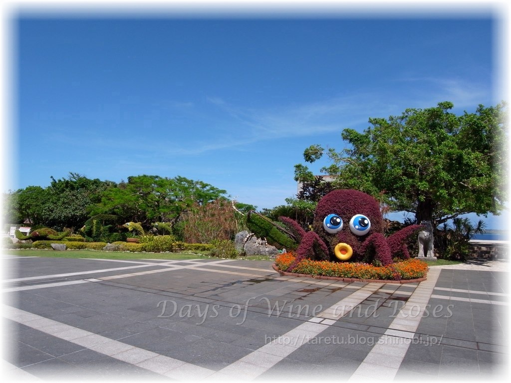 公園内には、樹木でできた動物たちがいっぱい。かわいいです。一番目立つタコさん。