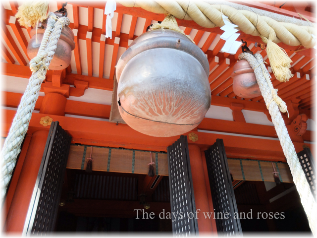 奉幣殿の鈴を鳴らして、参拝。ここの真ん中の鈴はでっかいけど鳴らせないようです。